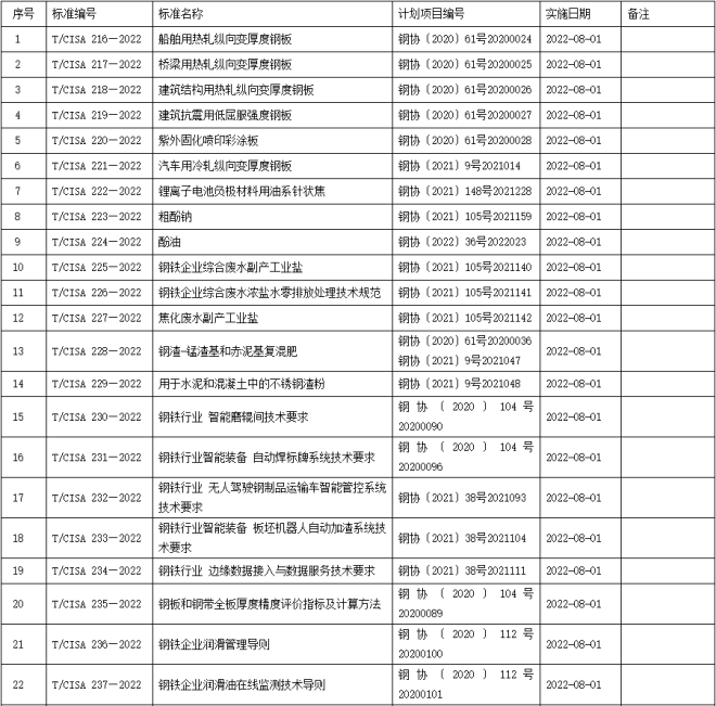《通知》涉及钢铁行业综合利用、智能制造、钢板、“领跑者”评价要求等领域,标准实施日期为2022年8月1日。