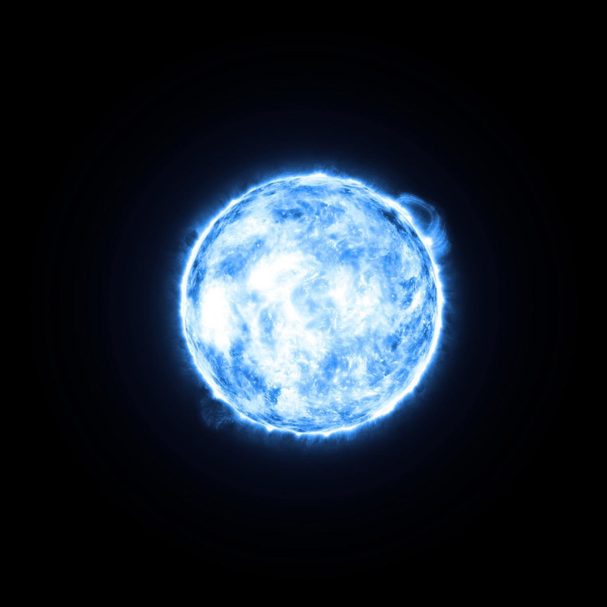 我们假设白矮星刚产生100万年,这正是理论估计的WD 0032-317年龄。尽管这短暂的冷却时间比起恒星几十亿年的寿命而言简直微不足道,但它仍然残留着37000摄氏度的高温,远远高于太阳表面5500摄氏度的温度,相当于蓝巨星的水平。