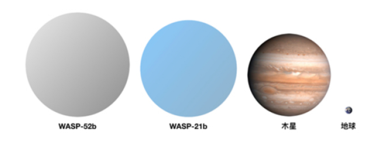 两颗热木星与木星和地球的尺寸对比示意图(图片来源:中国科学院)