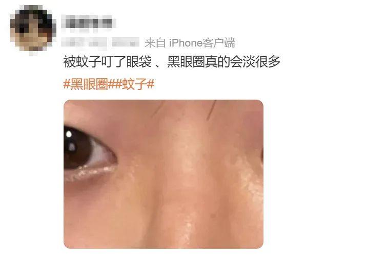 微博有网友就提到很典型的一个案例,他提到自己的一个朋友为了消黑眼圈,真信了“让蚊子咬两口”的说法,晚上故意没关纱窗等着蚊子来,结果第二天眼周肿成核桃,黑眼圈没消就算了,还多了 3 个红包,连眼线都画不了……