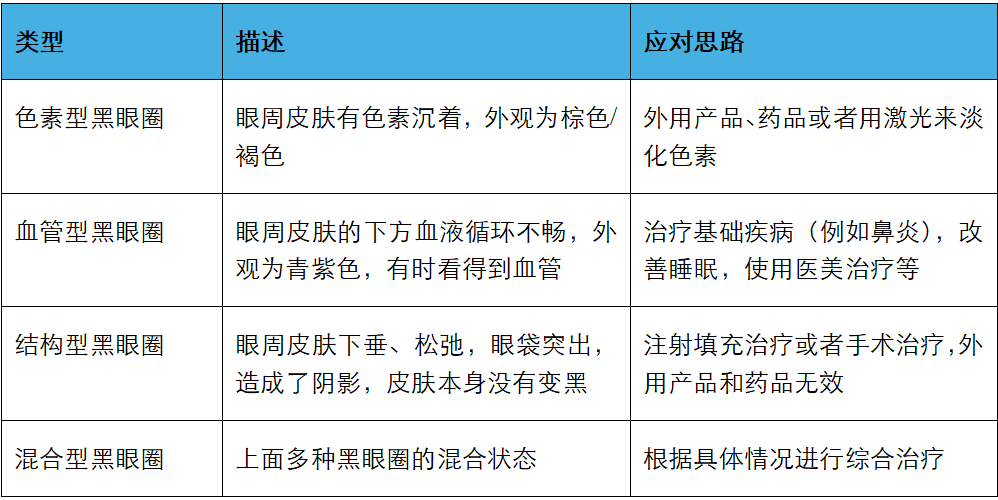 所谓的黑眼圈,其实并不是淤血导致的。医学上通常把黑眼圈归为 4 大类,它们由不同的原因产生的,且应对措施各不相同。