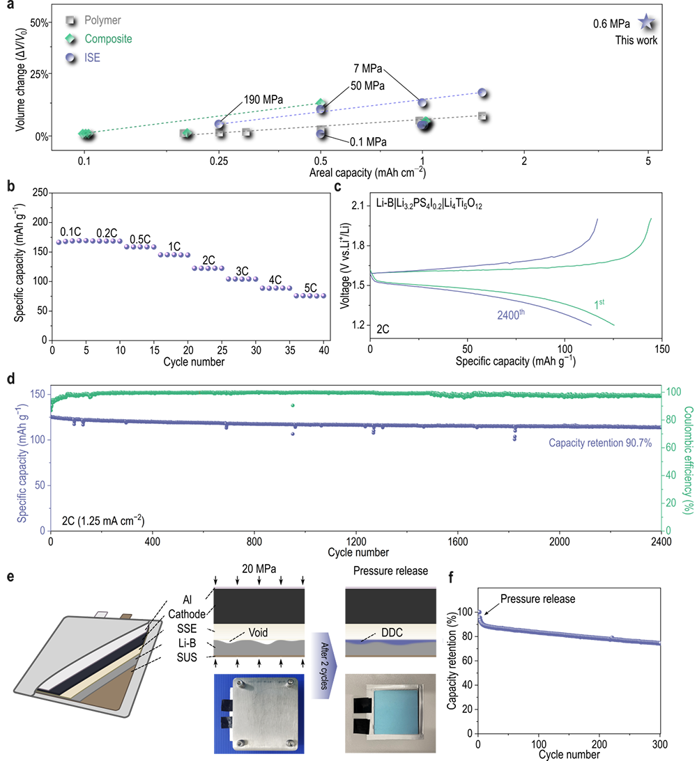 全固态金属锂电池因高安全性和能量密度双重优势潜力,被视为下一代储能器件突破的重要方向,解决固-固界面动态接触问题是推进工程化应用的全球共性挑战。全固态金属锂电池“制造”和“运行”分别要经历“高”和“低”两种压力,在高压力下金属锂发生蠕变易引发电池短路,而低压力下固-固界面又会接触不良,金属锂负极本身的体积效应严重,循环中界面劣化问题严重。