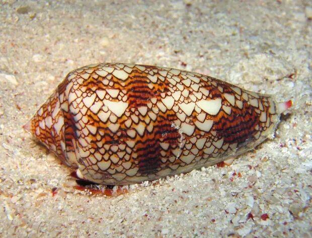 所以,你在野外看到任何一种芋螺都不能掉以轻心。比如,开头提到的织锦芋螺,就属于食螺芋螺,而它的毒素同样是致命的。