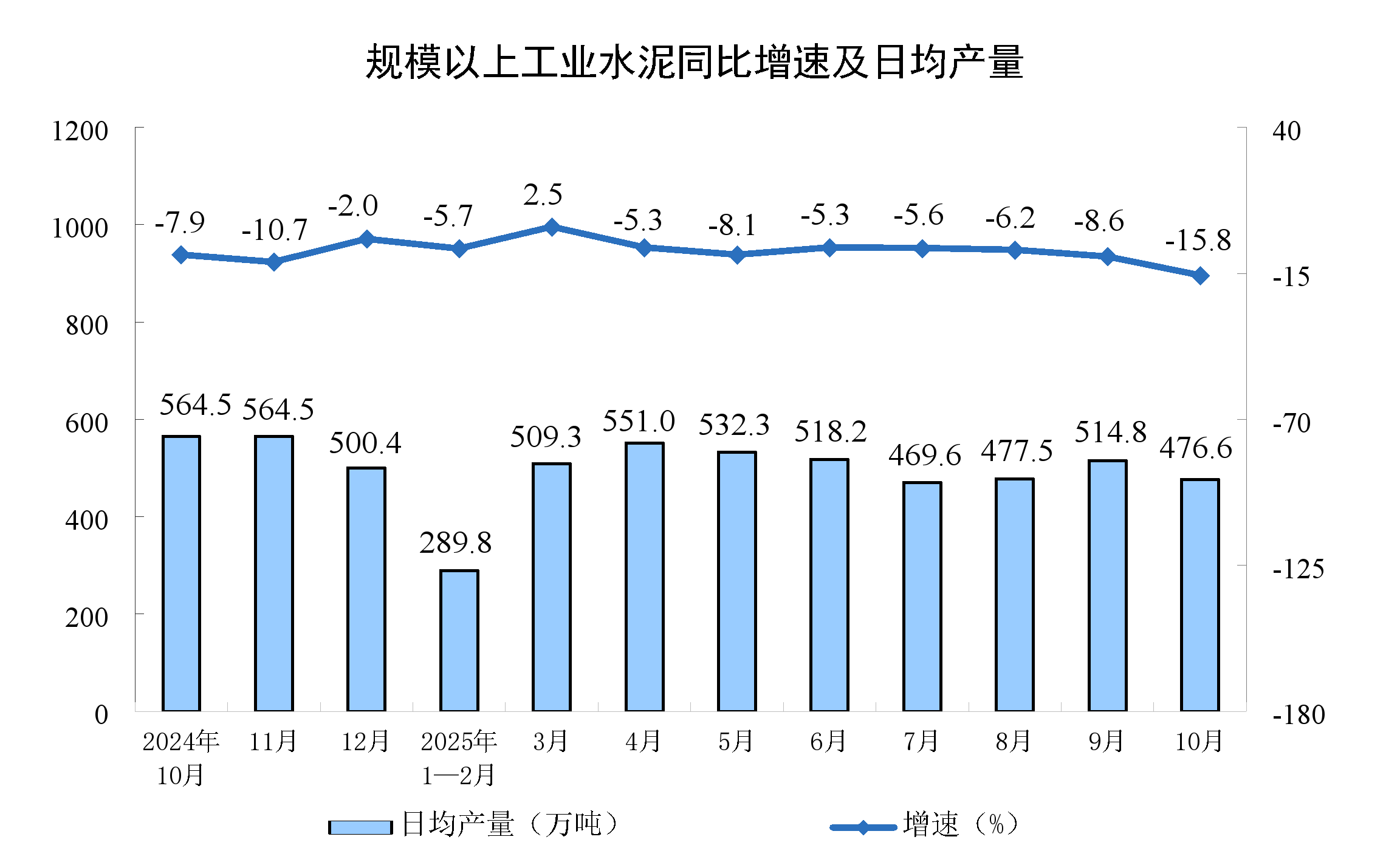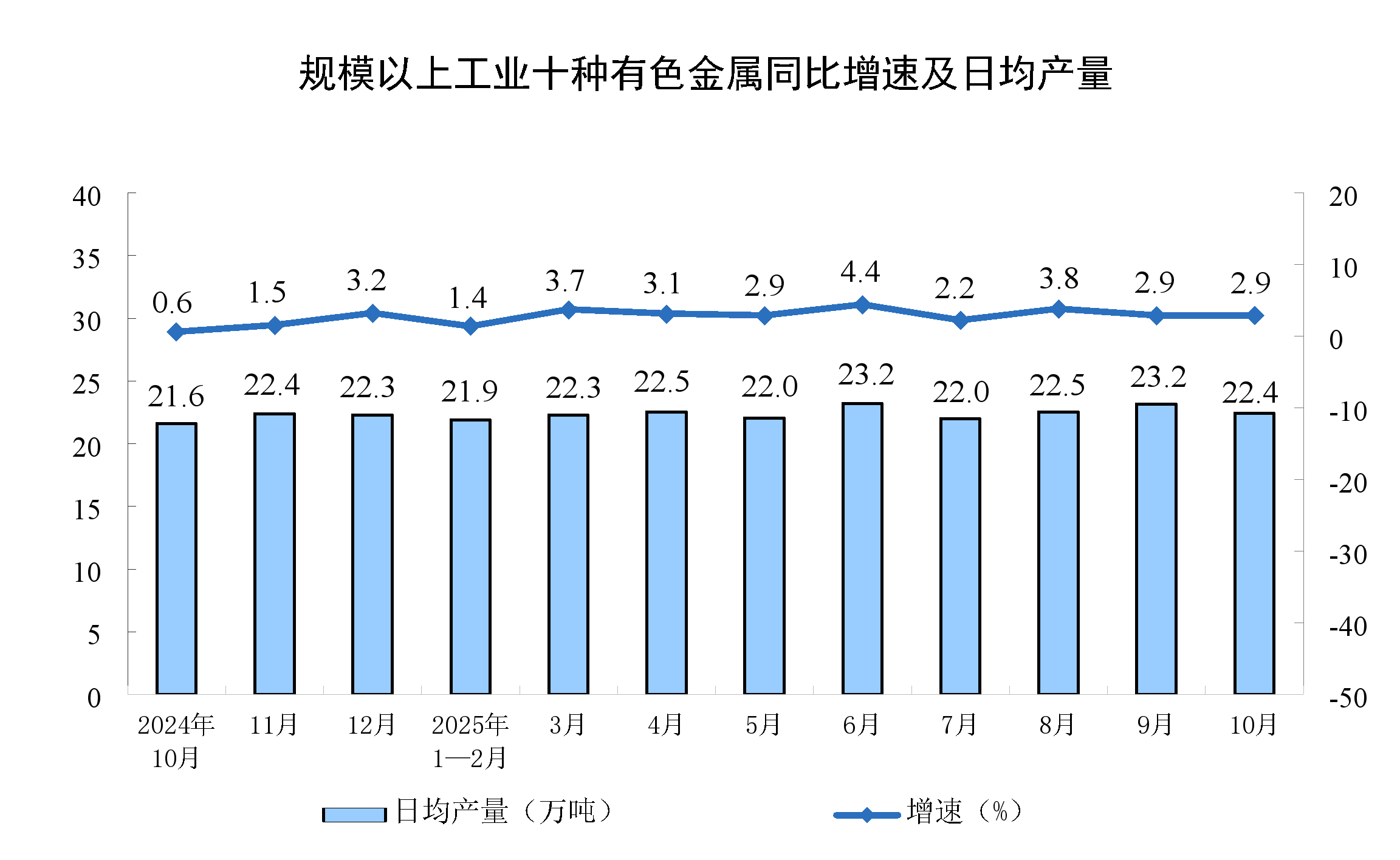 分产品看,10月份,规模以上工业623种产品中有313种产品产量同比增长。其中,钢材11864万吨,同比下降0.9%;水泥14775万吨,下降15.8%;十种有色金属695万吨,增长2.9%;乙烯314万吨,增长11.7%;汽车327.9万辆,增长11.2%,其中新能源汽车171.0万辆,增长19.3%;发电量8002亿千瓦时,增长7.9%;原油加工量6343万吨,增长6.4%。