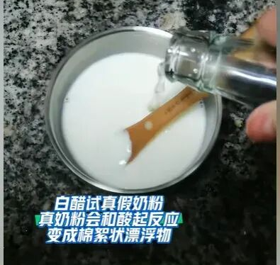 不少人可能有过担心,怕自己买到假奶粉。最近网上有网友用视频分享自己的鉴别方法——用白醋试真假奶粉,视频中博主称“真奶粉会和酸起反应变成棉絮状漂浮物”。