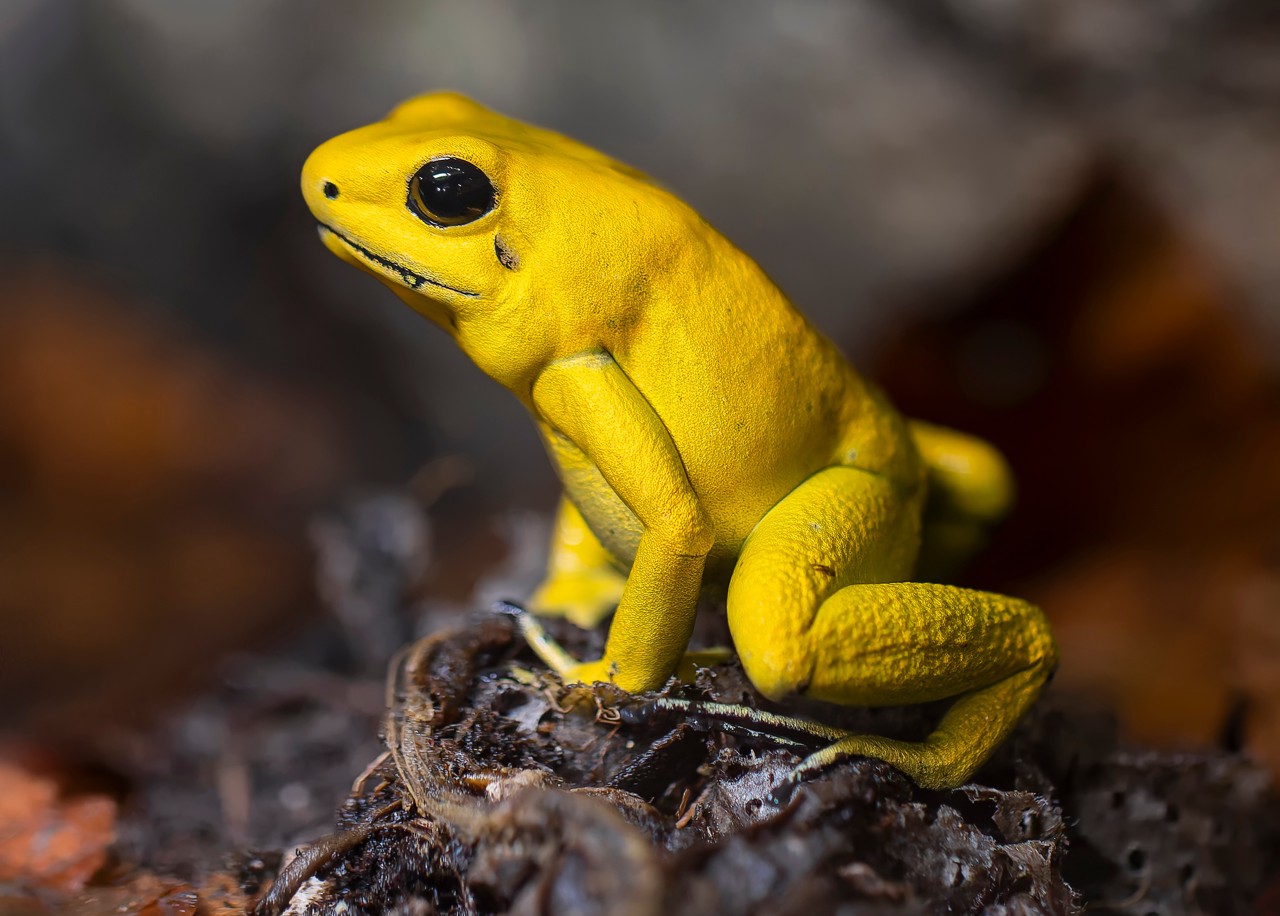 再比如脊椎动物剧毒之王:金色箭毒蛙(Phyllobates terribilis)。它皮肤上分泌出来的箭毒蛙碱(Batrachotoxin)属于神经毒素,可以阻断神经信号的传递,会导致肌肉麻痹、呼吸衰竭和心脏骤停。它的毒性非常剧烈,一毫克箭毒蛙毒素就可以杀死1万只小白鼠,或者10~20名成年人;而每只金色箭毒蛙身上至少有2毫克的毒素,杀伤力之大,可想而知。 虽然是“毒王”,但实际上,金色箭毒蛙本身根本就不会合成毒素。它的毒全都是靠“拿来主义”。 金色箭毒蛙从小就以蚂蚁、蟋蟀这些含有生物碱的小动物为食,会在吸收、代谢以后,将其中一部分精挑细选出来的毒素浓缩到自己的皮肤腺体里,这才成了剧毒之王。如果人工饲养箭毒蛙,喂不含毒素的饲料,它就只是一只美丽无害的小青蛙。