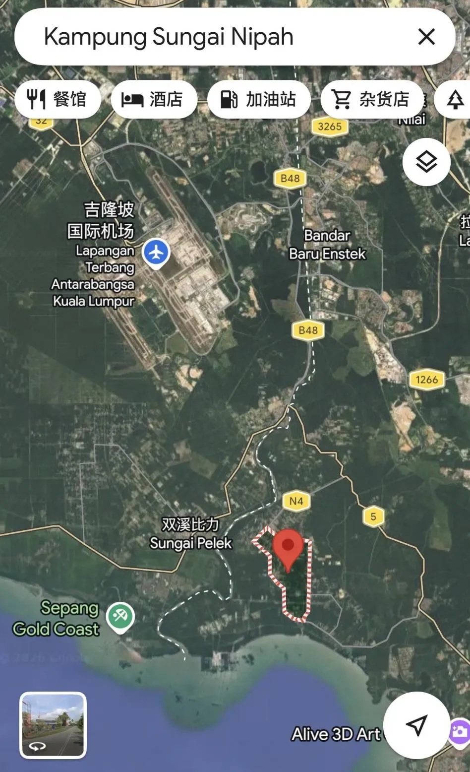 双溪立百新村的位置,离吉隆坡国际机场很近。