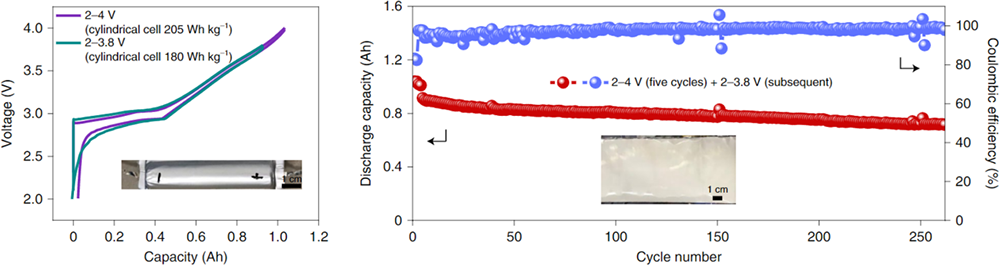 得益于上述三重的协同界面(集流体/钠界面、钠/电解液界面和电解液/正极界面)效应,实现了高度可逆的金属钠沉积(富有金属光泽),并且组装的Ah级别的圆柱型钠离子电池在不施加额外压力及非高温循环的情况下循环寿命可达260次。这项工作中关于本征钠沉积/剥离行为(不同于锂金属沉积)和界面化学的见解为进一步开发更高性能的钠离子电池提供了宝贵的思路。