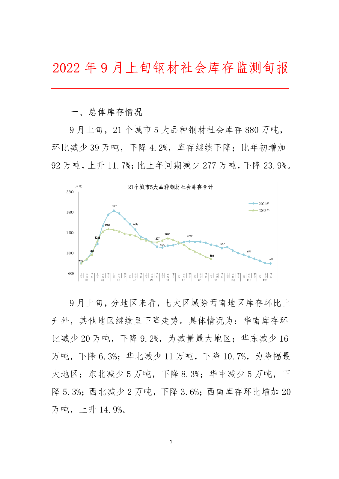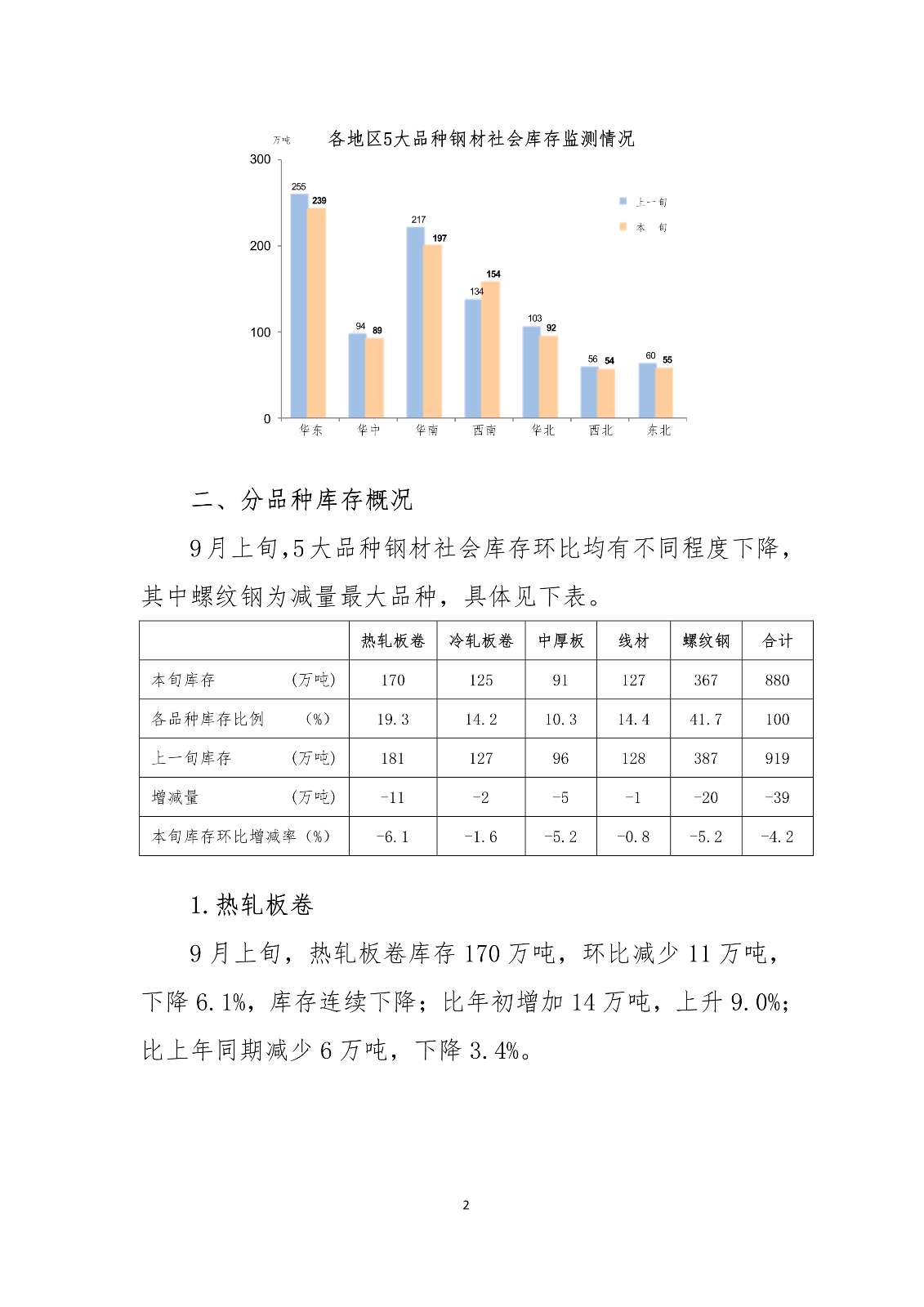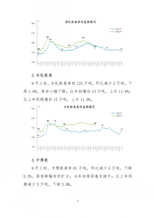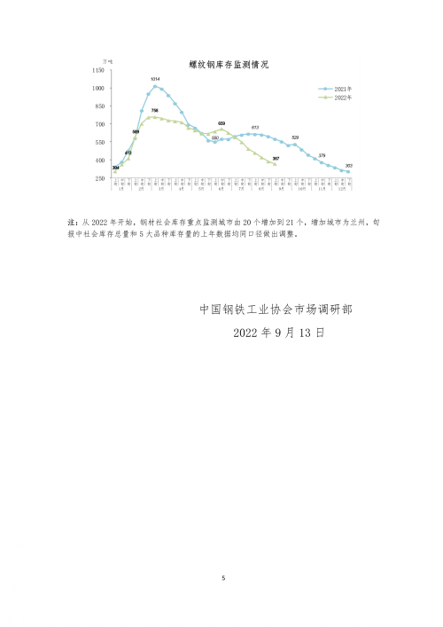 中钢协:2022年9月上旬钢材社会库存监测旬报