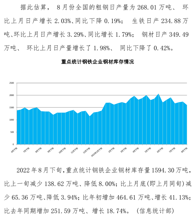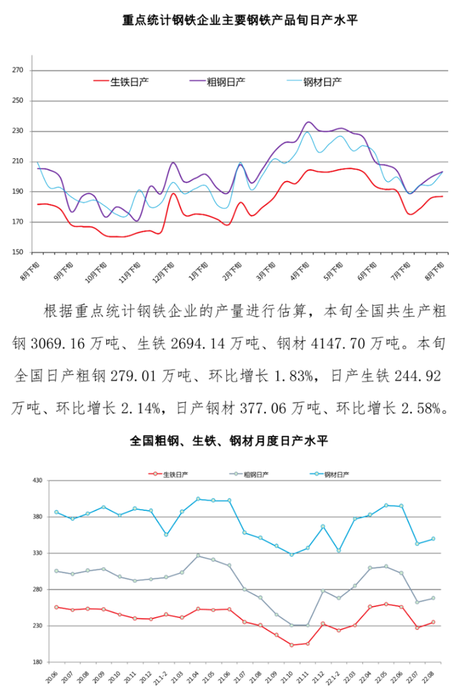 8月下旬重点统计钢企日产钢203.19万吨,环比增1.78%同比降1.02%