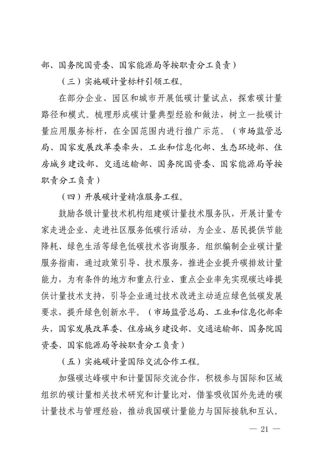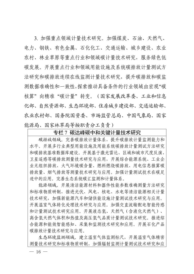 为贯彻落实《中共中央 国务院关于完整准确全面贯彻新发展理念做好碳达峰碳中和工作的意见》和《2030年前碳达峰行动方案》有关部署,市场监管总局、国家发展改革委、工业和信息化部、自然资源部、生态环境部、住房城乡建设部、交通运输部、中国气象局、国家林草局九部门联合发布《建立健全碳达峰碳中和标准计量体系实施方案》,具体内容如下——