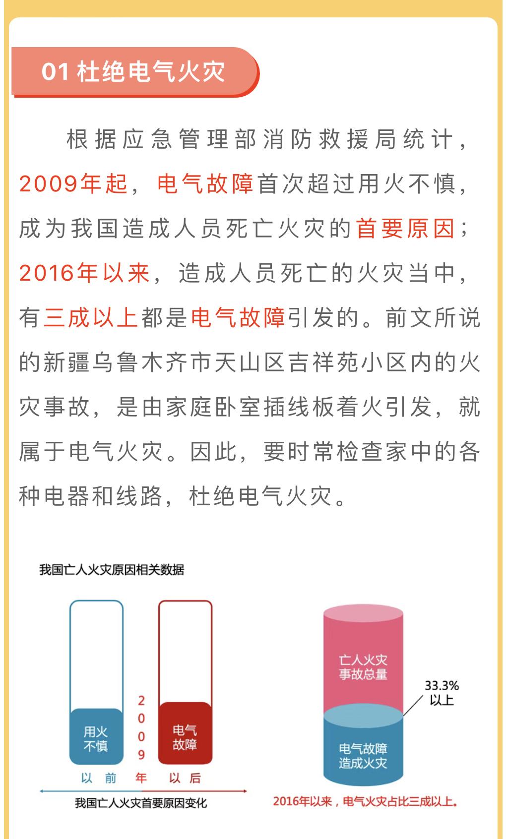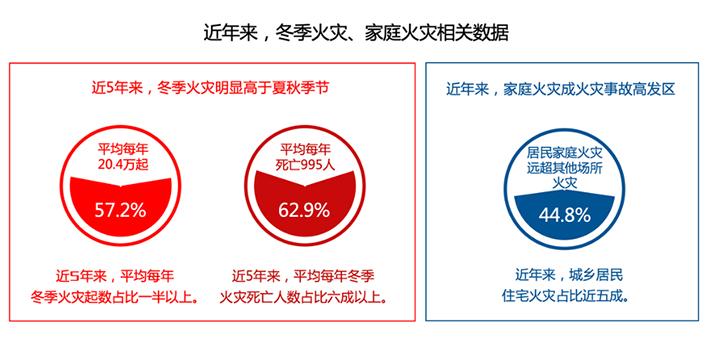 冬季风大干燥、天气寒冷,人们用火、用电、用气量骤增,火灾隐患增高。据应急管理部消防救援局统计,近5年平均每年冬季发生火灾20.4万起、死亡995人,分别占全年火灾总数和死亡人数的57.2%和62.9%,明显高于夏秋季节。同时,据消防救援部门统计,近年来,城乡居民住宅火灾数量占火灾总起数的44.8%,远超其他场所火灾数量。居民家庭已经成为火灾事故,特别是亡人火灾的高发区和重灾区。11月24日,新疆乌鲁木齐市天山区吉祥苑小区一高层住宅楼发生火灾,造成10人死亡、9人受伤。冬季做好家庭防火,刻不容缓!