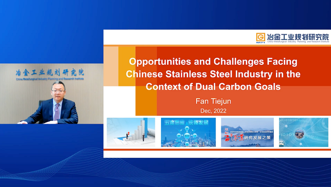 冶金工业规划研究院范铁军院长受邀参会,并作主题报告《“双碳”背景下中国不锈钢行业面临的机遇与挑战》(Opportunities and Challenges Facing Chinese Stainless Steel Industry in the Context of Dual Carbon Goals)。