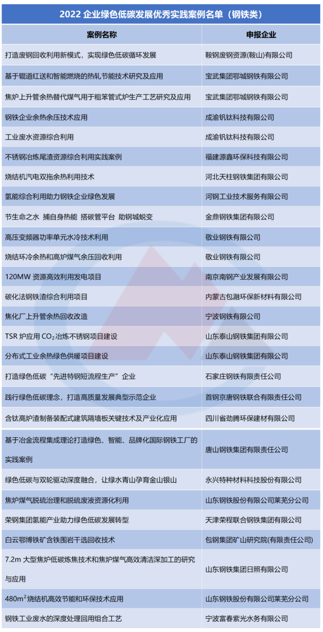 祝贺!这些钢铁项目入围“2022企业绿色低碳发展优秀实践案例”