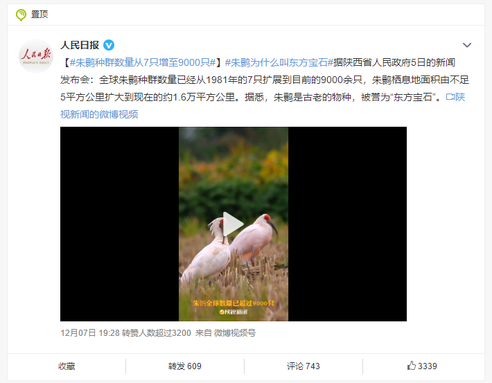 经过四十多年的保护工作,全球的朱鹮数量已经从最初的7只增长为现在的超过9000只。还建立了一定规模的人工饲养和再引入种群,还曾经向韩国和日本等国家输出朱鹮种源。到现在,我们可以大胆地说,朱鹮基本摆脱了“野外灭绝”的危险。