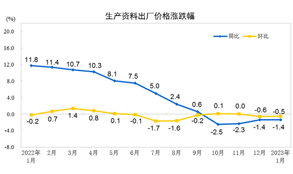 2023年1月份工业生产者出厂价格同比下降0.8% 环比下降0.4%