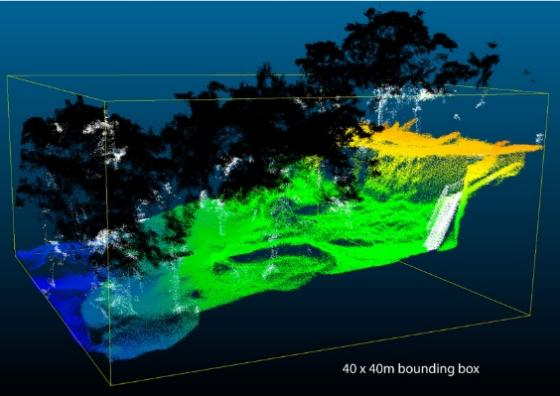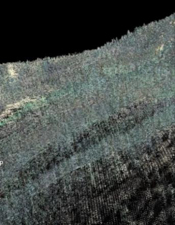 对于森林这种复杂形貌,依然有不少激光光线能够到达树林下的地面,激光雷达探测得到的点云数据会被送入计算机,计算机识别哪些数据点是森林的,哪些是地面的,接着滤除森林的点云数据,剩下的就是地面的形貌数据啦。