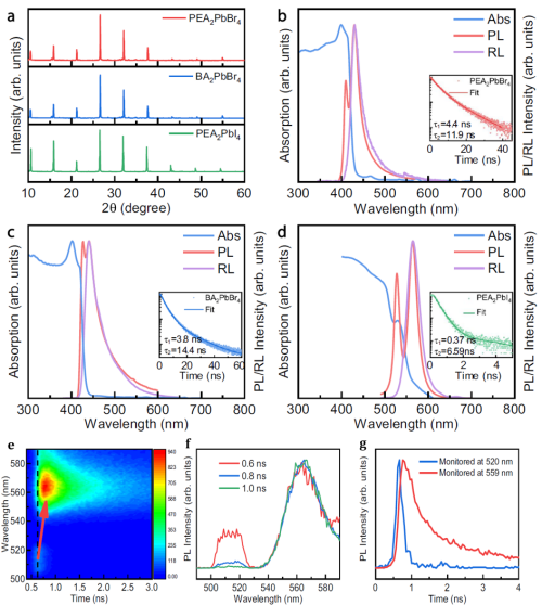 科研团队先前采用限域激子发光和掺杂剂等策略解决自吸收问题。然而,这些方法在抑制自吸收的同时造成了发光寿命的延长。近日,中国科学院深圳先进技术研究院医学成像科学与技术系统重点实验室团队和华中科技大学光电子器件与三维集成团队合作发现,二维钙钛矿晶体中普遍存在的内在应变现象可显著减少自吸收效应,同时不影响发光寿命。这一发现为高能γ射线探测和PET成像提供了新思路。相关研究成果以Self-wavelength Shifting in Two-dimensional Perovskite for Sensitive and Fast Gamma-ray Detection为题,在线发表在《自然-通讯》(Nature Communications)上。