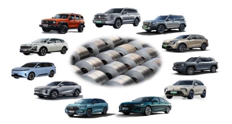 图7 高韧性铝硅镀层热冲压钢汽车应用