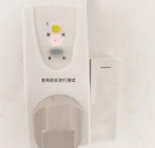 戴上橡胶手套,先按下测试键(T)看指示灯有没有熄灭,再按复位键(R)看指示灯有没有亮。