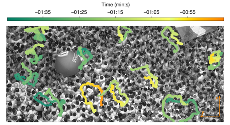 这种运动的周期远远超出人体自身运动的时间尺度,也排除了外部声、光等信号的驱动,无可辩驳地证明,这是一种人群集群涌现的宏观行为。 仿佛密集的人群,变成了一种“自组织流体”,能自发地在不同区域形成大型的涡旋结构,如同无数个“迷你龙卷风”在人群中同时诞生,共同谱写出一曲令人惊叹的集群运动交响曲!